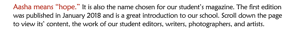 Aasha was printed in Jaipur with assistance by Mr. Varandani and all the kind and talented print-artists at Kamaldeep.